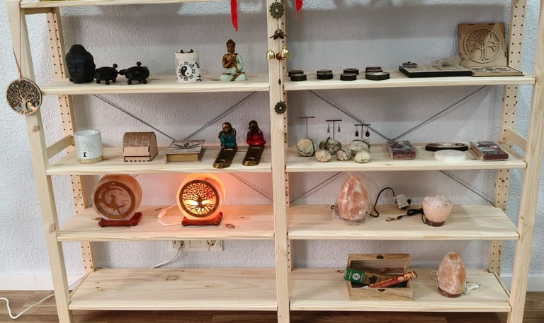 Somos una tienda fisica en Alaquas (Valencia) y un proyecto nacido desde el corazon, donde cada pieza y cada sesion se eligen con intencion, respeto y sensibilidad.