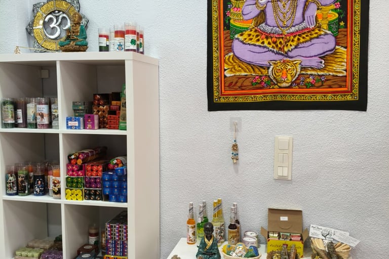 Una pequeña muestra de la gran cantidad de articulos esotericos que disponemos en nuestra tienda fisica y online. Desde inciensos, quemador de aromas y sahumerios, hasta colgantes y pendientes de gran calidad. Sin olvidarnos de una variedad de decoracion esoterica para el hogar.